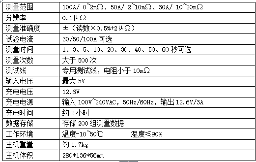 ZYJD-100A手持回路電阻測試儀主要技術(shù)指標(biāo)